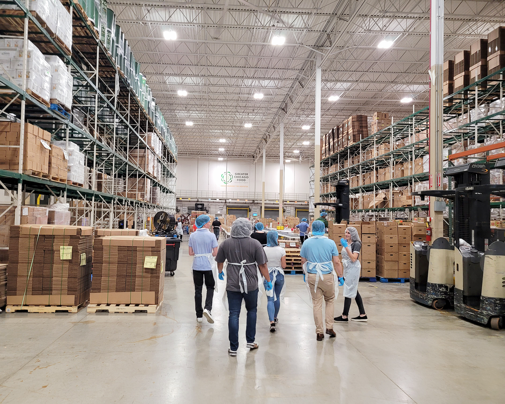 GCFD Executive Director and CEO Kate Maehr noted in a letter that “before the COVID-19 pandemic, the Food Depository was servicing one in seven people in Cook County.” That’s nearly 740,000 people, and this number is only expected to keep rising. So we were more than ready to pitch in to help!