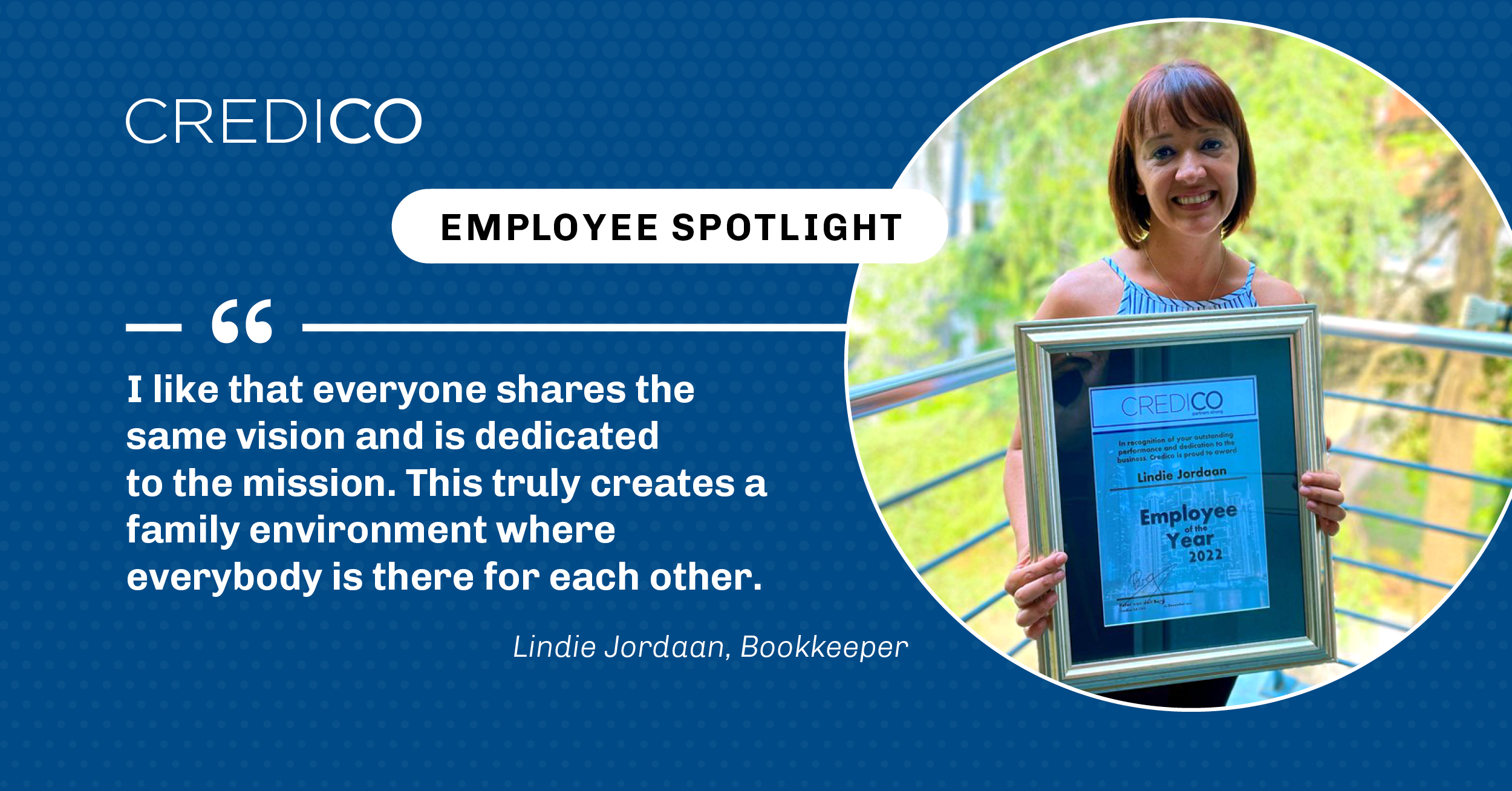 We’d like to introduce this month’s featured employee – Lindie Jordaan, Bookkeeper at Credico Financial Services in South Africa. She has been recognized as Employee of the Year for 2022! We discuss becoming the best version of oneself, the family atmosphere and mentorship inherent in a shared mission, and the best way to jumpstart the day.