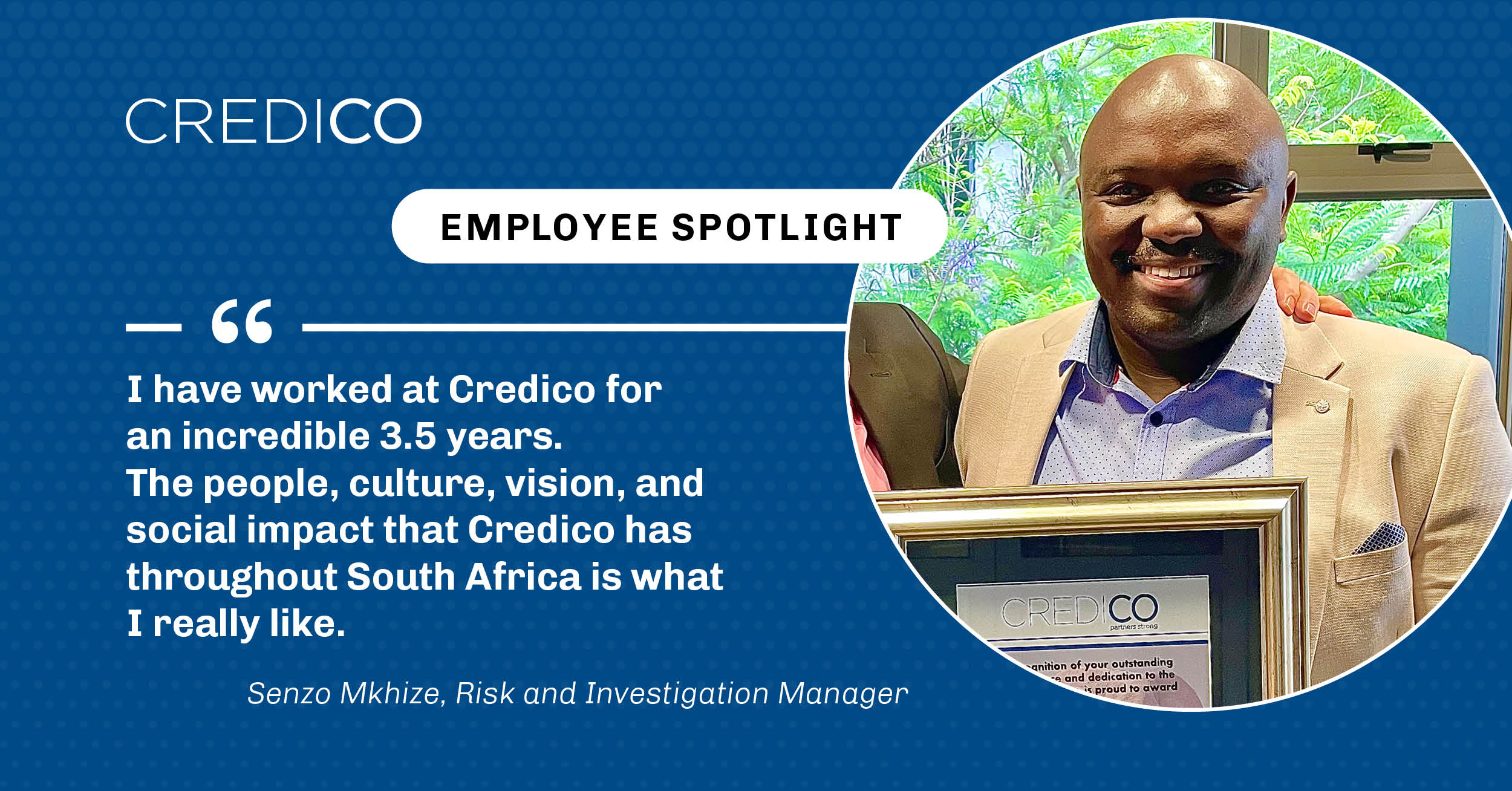 Our next featured employee is Senzo Mkhize, Risk and Investigation Manager at Credico South Africa, and their 2024 Employee of the Year!