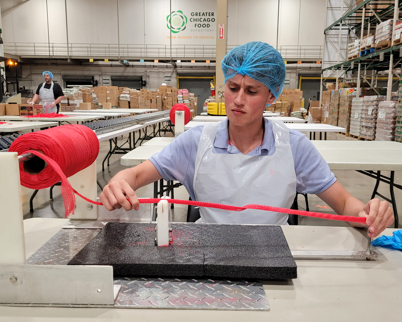 No community effort can be made in isolation, though; our group was working alongside other volunteers with guidance from the tireless Food Depository staff. Conor Brennan, Senior Accountant at Credico (USA) LLC, said, “I had a great time cutting net rope and tying the end to create a bag. We were taking tips from a woman that had volunteered with GCFD for some time. I don’t think I would ever be able to cut and tie bags as fast as she could; Brennan (Delaney, Commissions Analyst at Credico USA) came close. Had a fun time trying, though!”