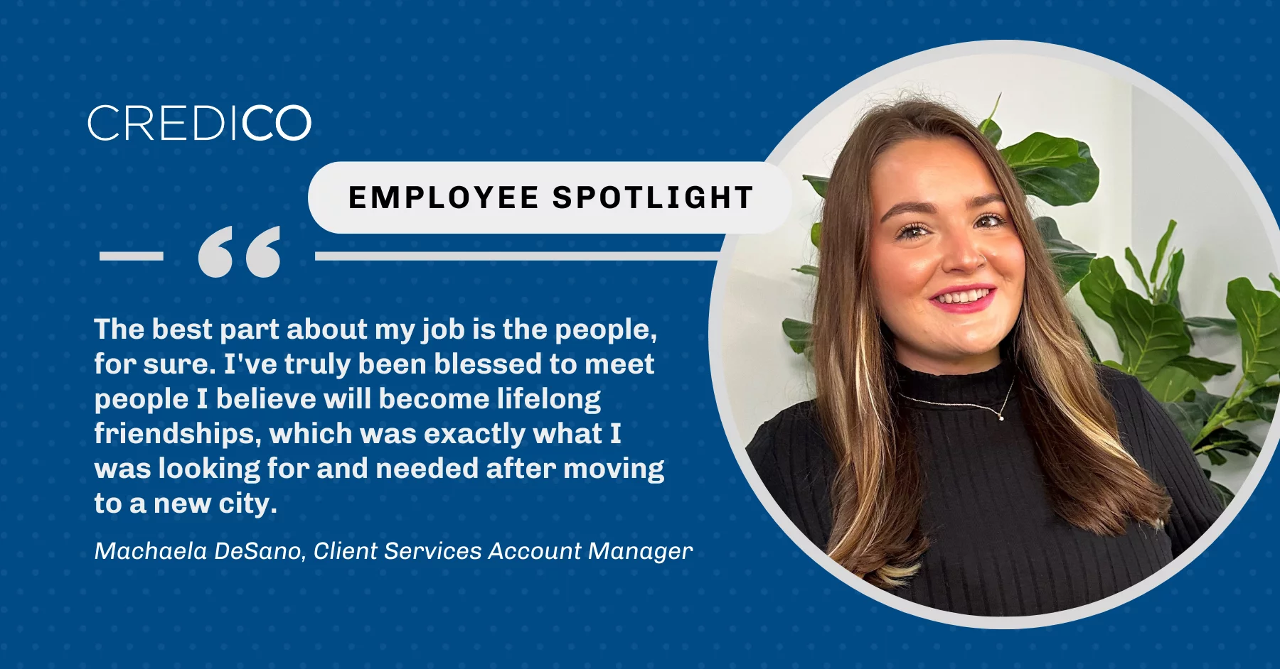 Our next featured employee is Machaela DeSano, Account Manager at Credico (USA) LLC. She tells us about the joys of in-person connections, maintaining a work-life balance, and lifelong friendships near and far.